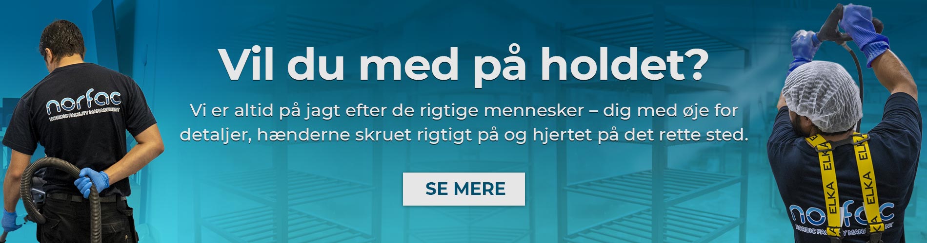 Hos norfac er vi specialister i Facility Management. Med skræddersyede totalløsninger kommer vi ud i alle hjørner af jeres virksomhed og sørger for, at alt lever op til alle krav for rengøring og hygiejne.